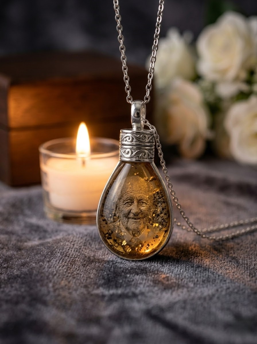 Cremation Ash Memory Pendant – Personalized Resin Photo Cremation Jewelry Keepsake