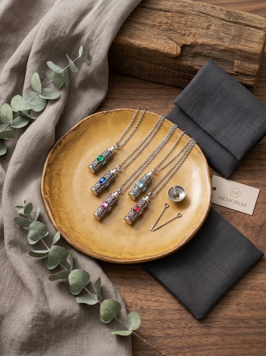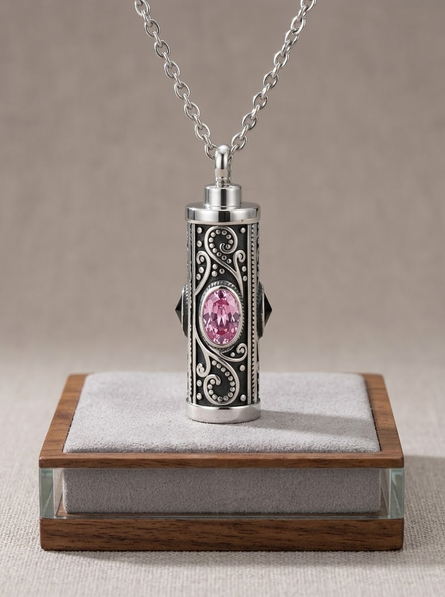 Cremation Ash Necklace Sterling Silver – Memorial Pendant for Ashes Keepsake Jewelry