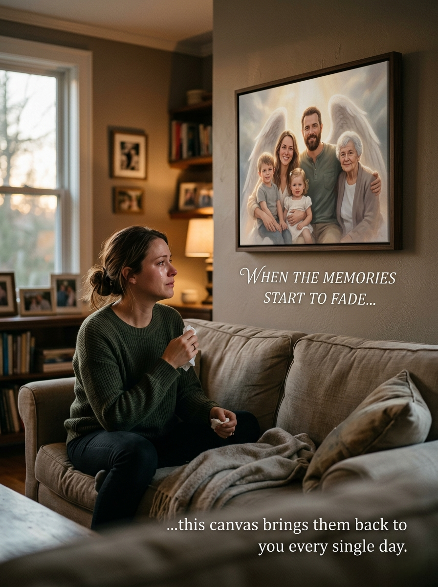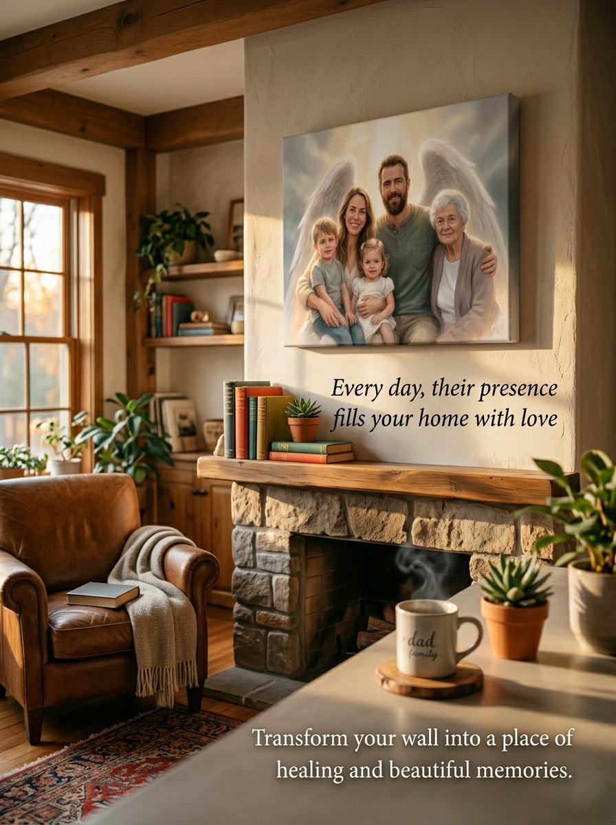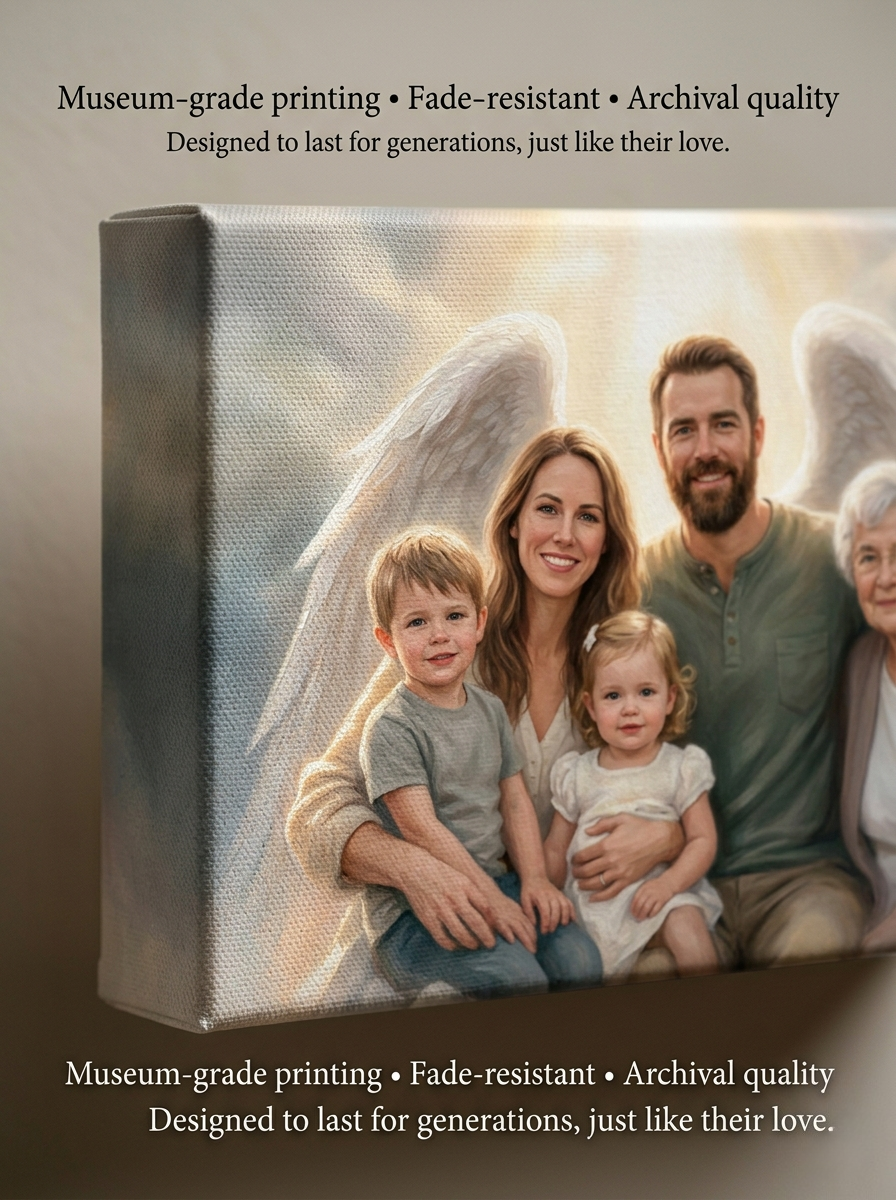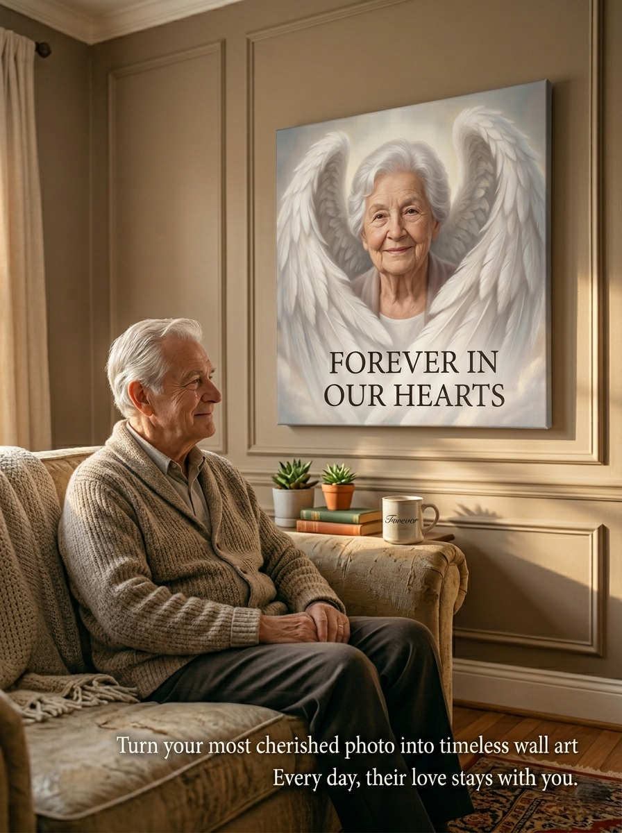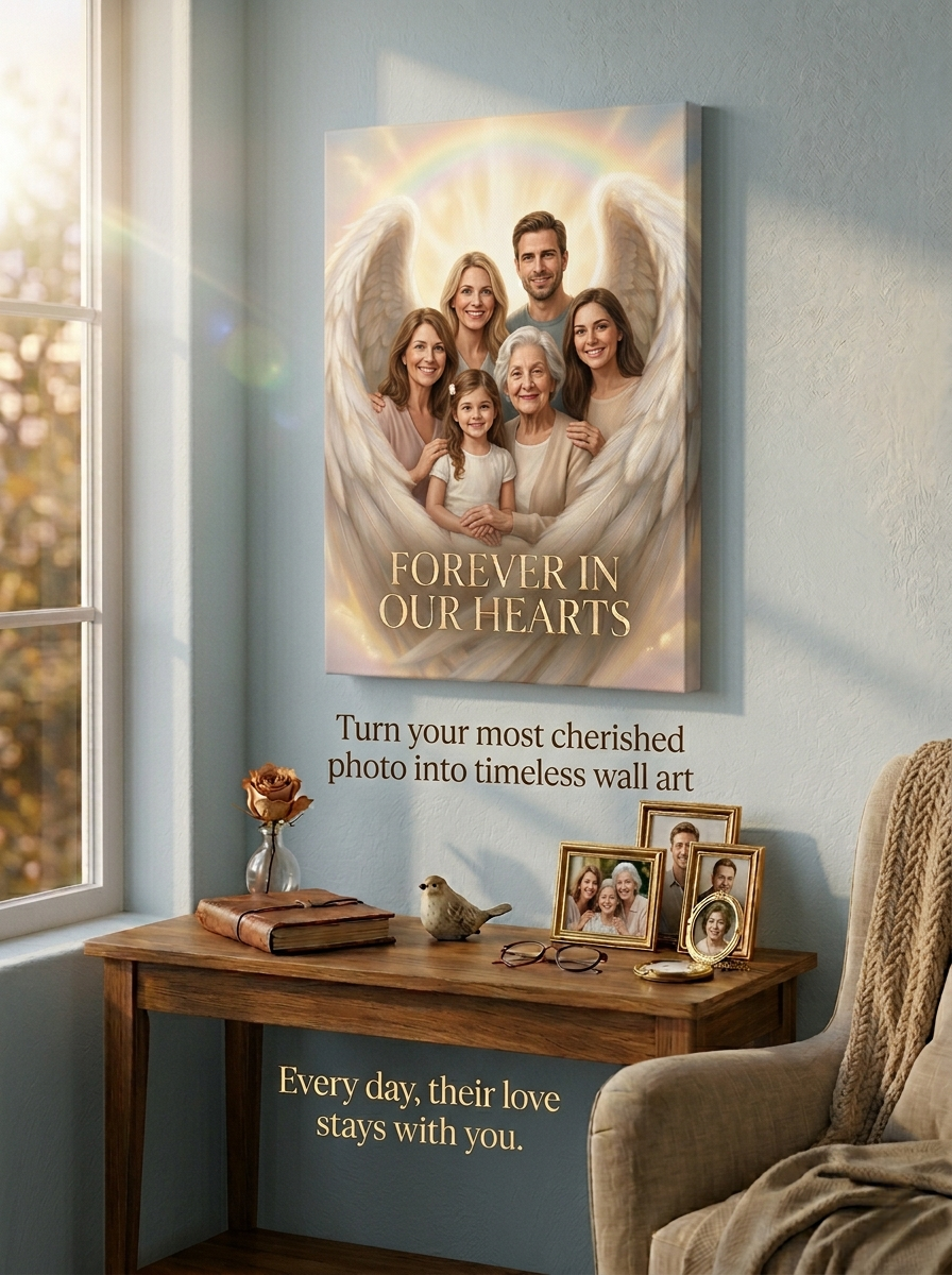Heavenly Photo Wall Art – Personalized Memorial Canvas with Angel Wings Forever in Our Hearts