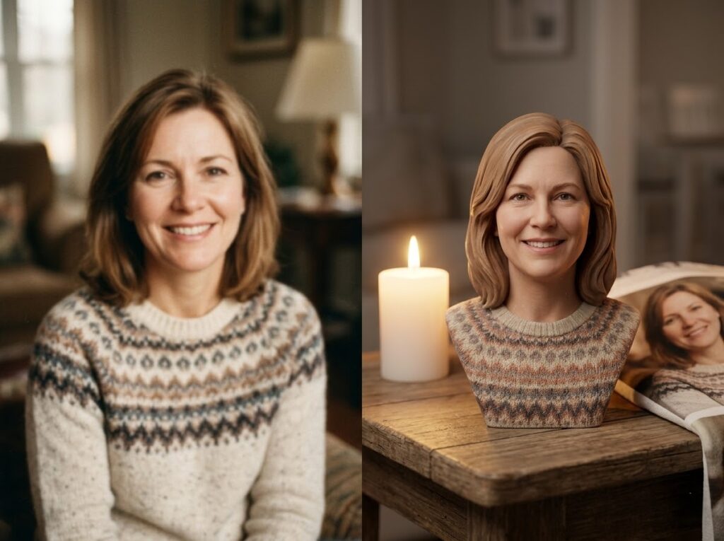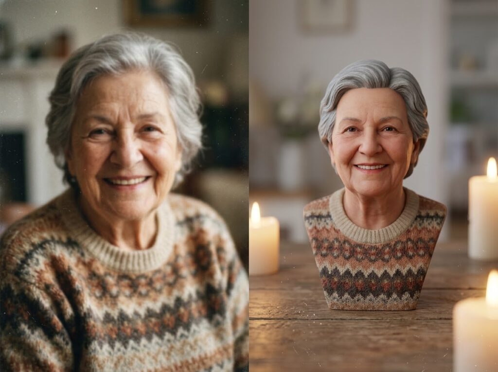 “Seeing my grandmother’s smile every day brings me peace. The 3D figurine captures her essence perfectly. Thank you for this beautiful keepsake.”